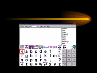 AAC (augmentative and alternative communication) refers to methods of communication other than speech that are used to supplement or replace spoken language. This may include gestures, sign language, picture symbols, letter boards, and speech-generating devices. AAC is used by those with disabilities or impairments that impact their ability to communicate verbally. Effective AAC requires considering the individual's needs, abilities, environments, and interaction partners to promote meaningful communication and participation.