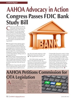 The AAHOA report discusses the passage of H.R. 2056, which mandates a study on the impact of failed banks by the FDIC, reflecting AAHOA's strong advocacy. Additionally, AAHOA is actively opposing legislative efforts for OTAs to be exempt from paying occupancy taxes while supporting legislative reforms to ensure financial institutions are regulated fairly. The report also highlights an upcoming political debate featuring Howard Dean and Michael Steele at the AAHOA convention, addressing economic uncertainty and its implications for hoteliers.