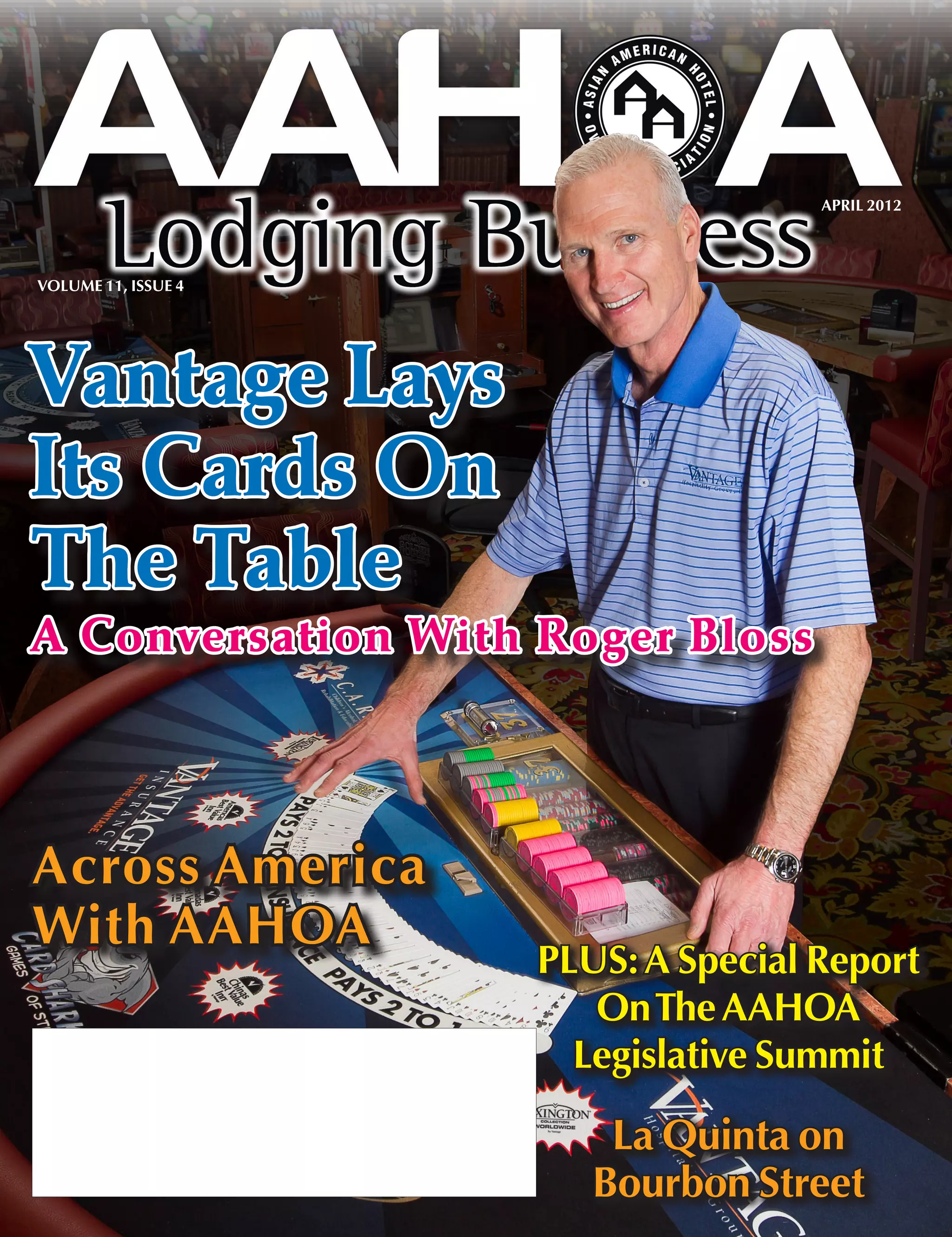 This issue of the magazine features an interview with Roger Bloss, CEO of Vantage Hospitality, discussing the company's growth strategy. It also provides coverage of the Asian American Hotel Owners Association's annual legislative summit and issues impacting the industry. Additionally, it shares details about a La Quinta property located in New Orleans.