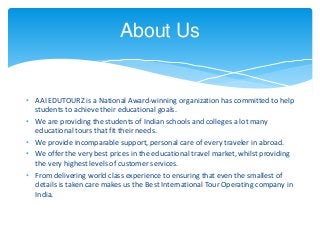 • AAI EDUTOURZis a National Award-winning organization has committed to help