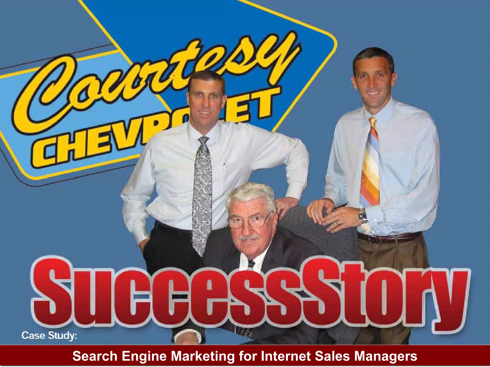 Search engine marketing (SEM) strategies should target traffic to websites at four key stages: before visitors arrive, after arrival, after inquiries, and after arriving at the store. Types of online advertising include pay-per-click (PPC), pay-per-thousand impressions (CPM), and pay-per-conversion. Internet sales managers can manage SEM themselves or use agencies and providers. Key factors for success include keyword placement and cost per impression.