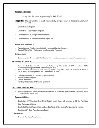 Aashish Sharma is a SAP ABAP professional seeking a challenging career implementing ERP solutions. He has over 5 years of experience working with SAP R/3 ECC 6.0 and specializes in ABAP programming, including reports, forms, and module pool programming. Currently he works for Ralson (India) Ltd as an ABAP programmer developing reports, enhancements, and handling various modules. He has received certificates of appreciation for successful SAP implementation projects.