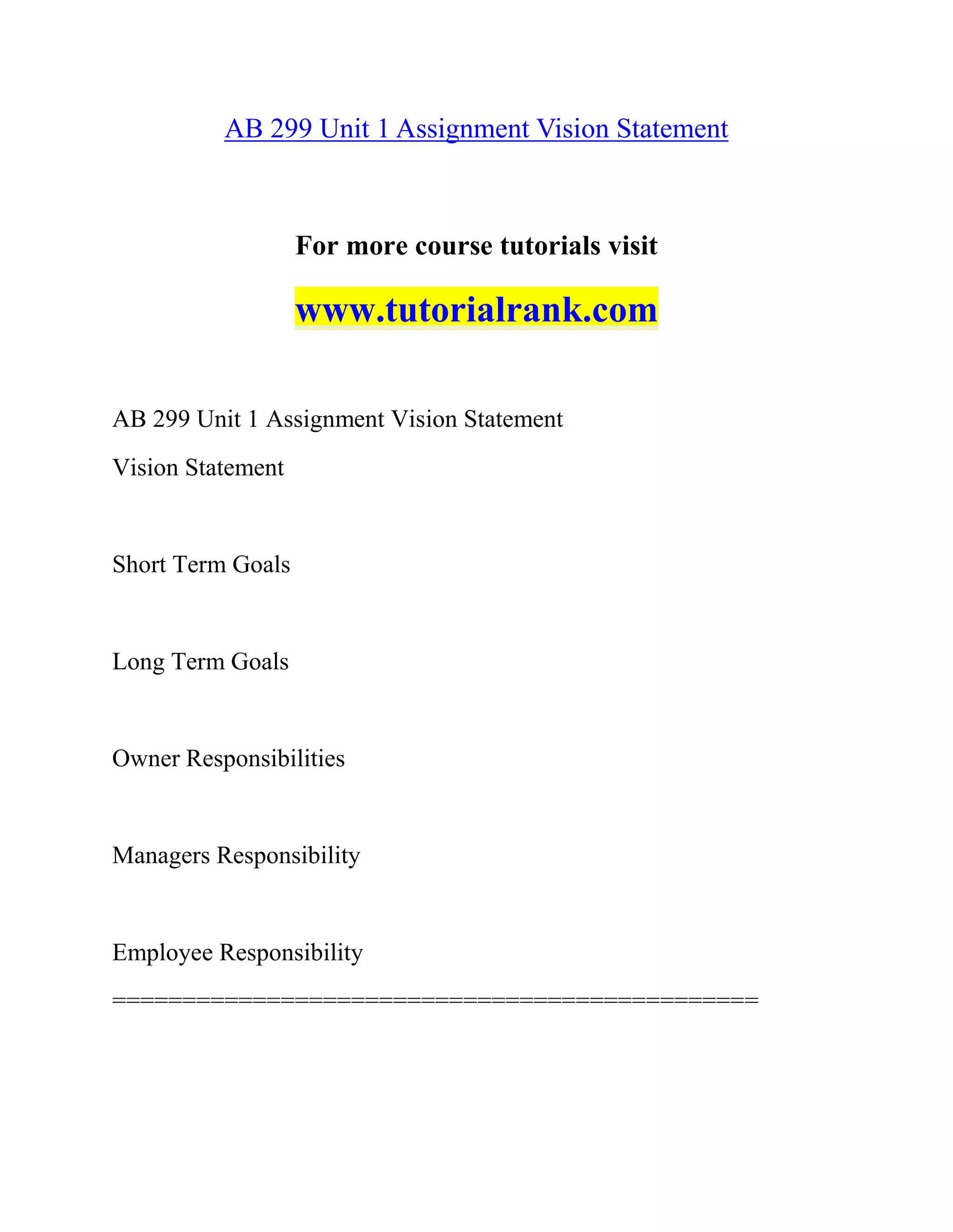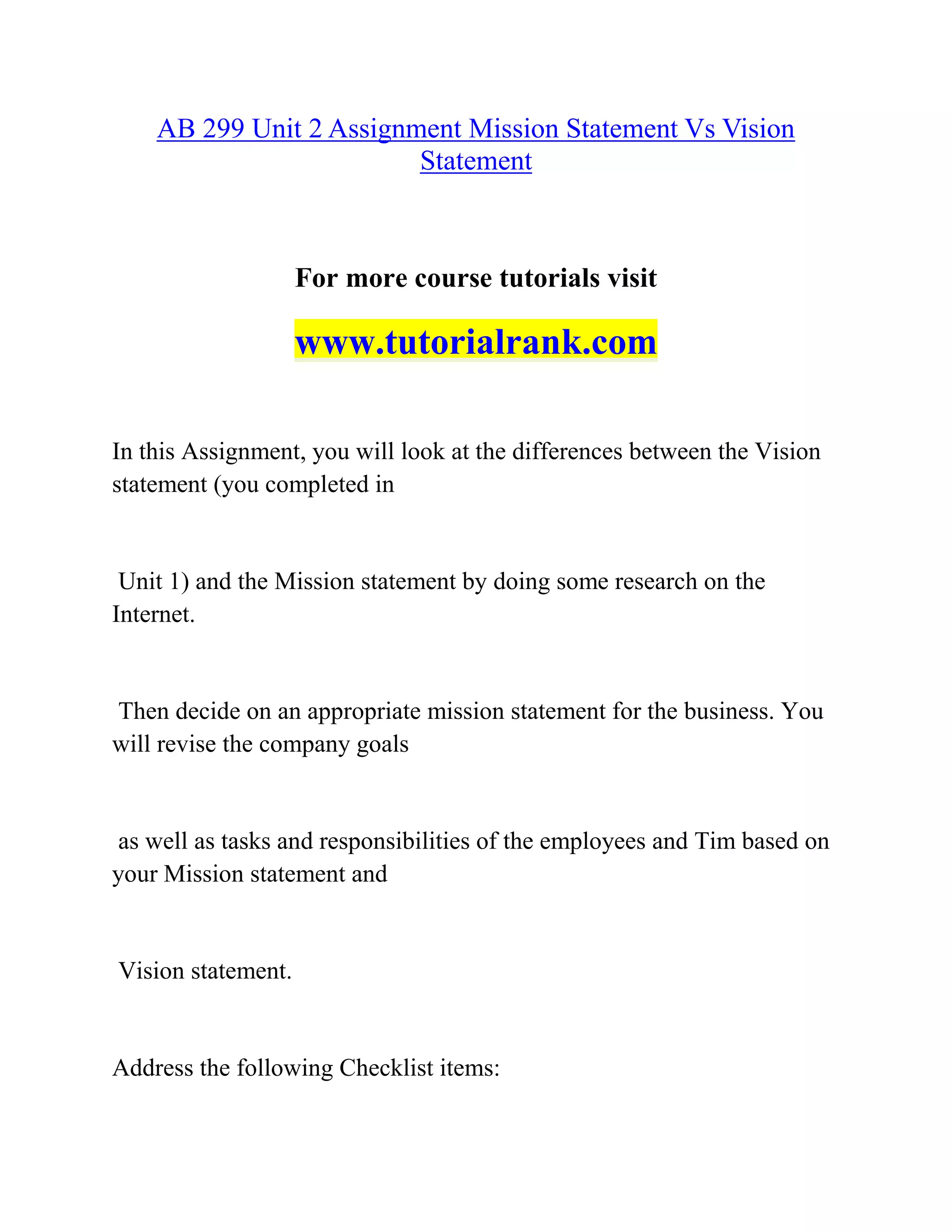 The document outlines assignment tasks for an AB 299 course related to business management, focusing on developing vision and mission statements, analyzing competitive advantages, and evaluating marketing strategies for Tim's Coffee Shoppe. Each unit requires detailed reports on different aspects of the business, including human resources, financial projections, and supplier selection, with specific formatting and content guidelines. The final project culminates in a comprehensive evaluation of the coffee shop's performance and suggestions for improvements.