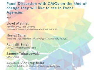 The panel discussion focused on the changing role of events and experiential marketing from the perspective of CMOs. Some key points discussed included: