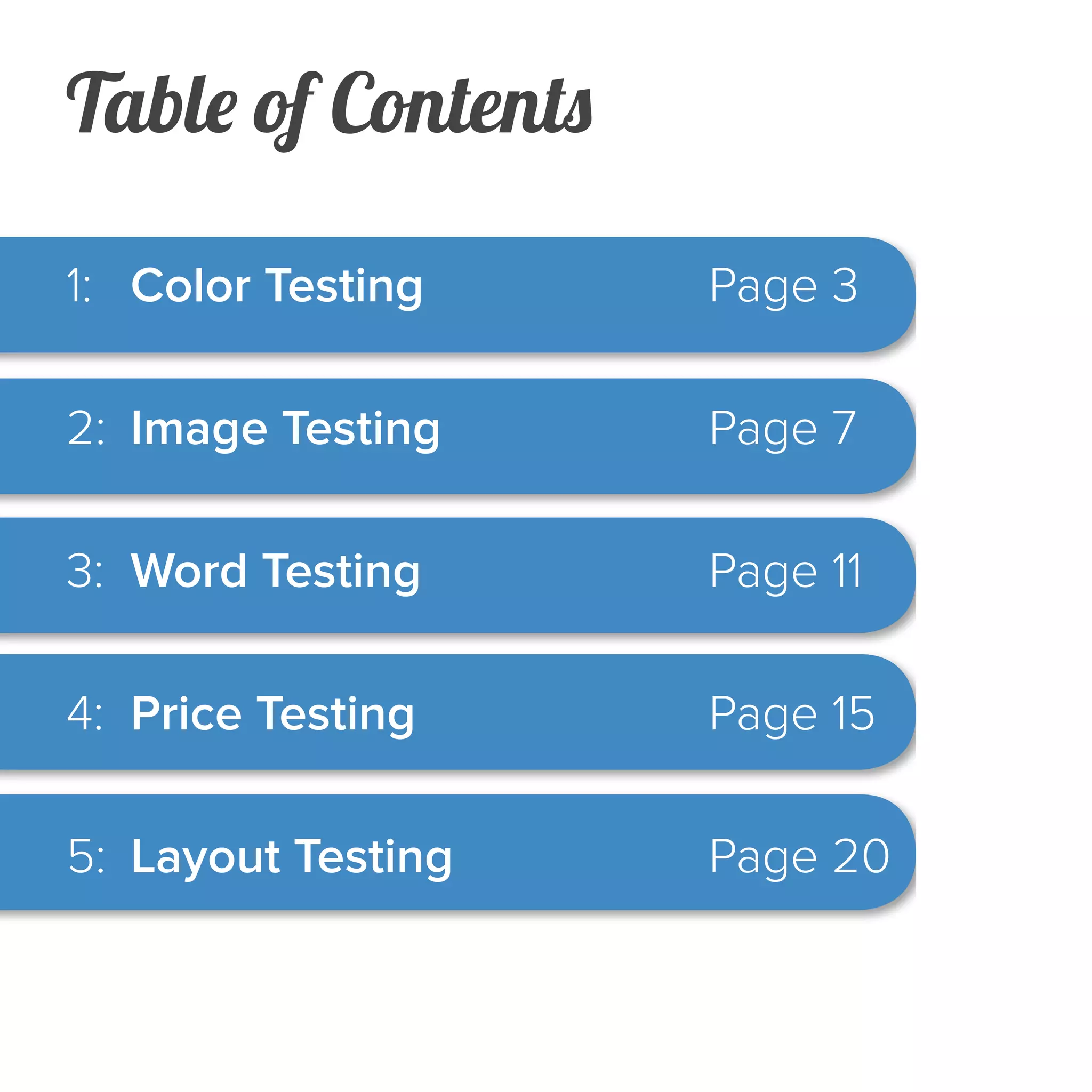 2) It describes why elements like color, images, wording, pricing, and layout should be tested, and includes examples that tested variations of calls-to-action buttons based on these different elements.