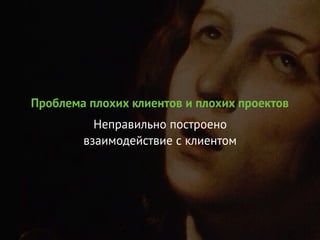 Документ обсуждает проблемы разработки, связанные с взаимодействием с клиентами и целевой аудиторией. Подчеркиваются важность понимания нужд пользователей, необходимость концентрации на результате и предупреждение перерасхода ресурсов на ненужные функции. Основные рекомендации включают установление правильных приоритетов и создание минимально жизнеспособного продукта (MVP).