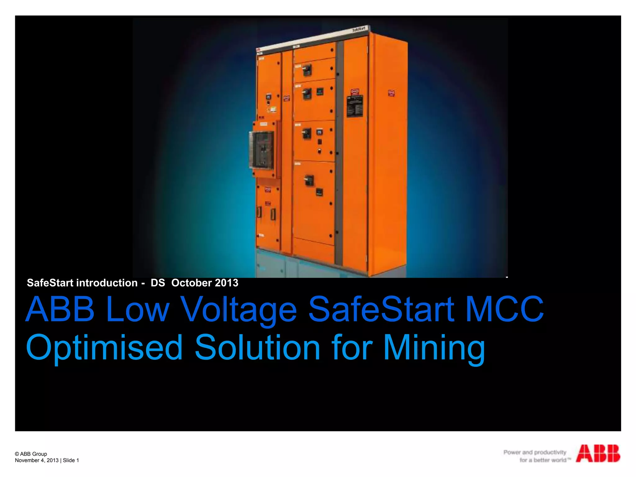 The document summarizes ABB's SafeStart Motor Control Centre (MCC), an optimized solution for motor control in mining applications. Key points: