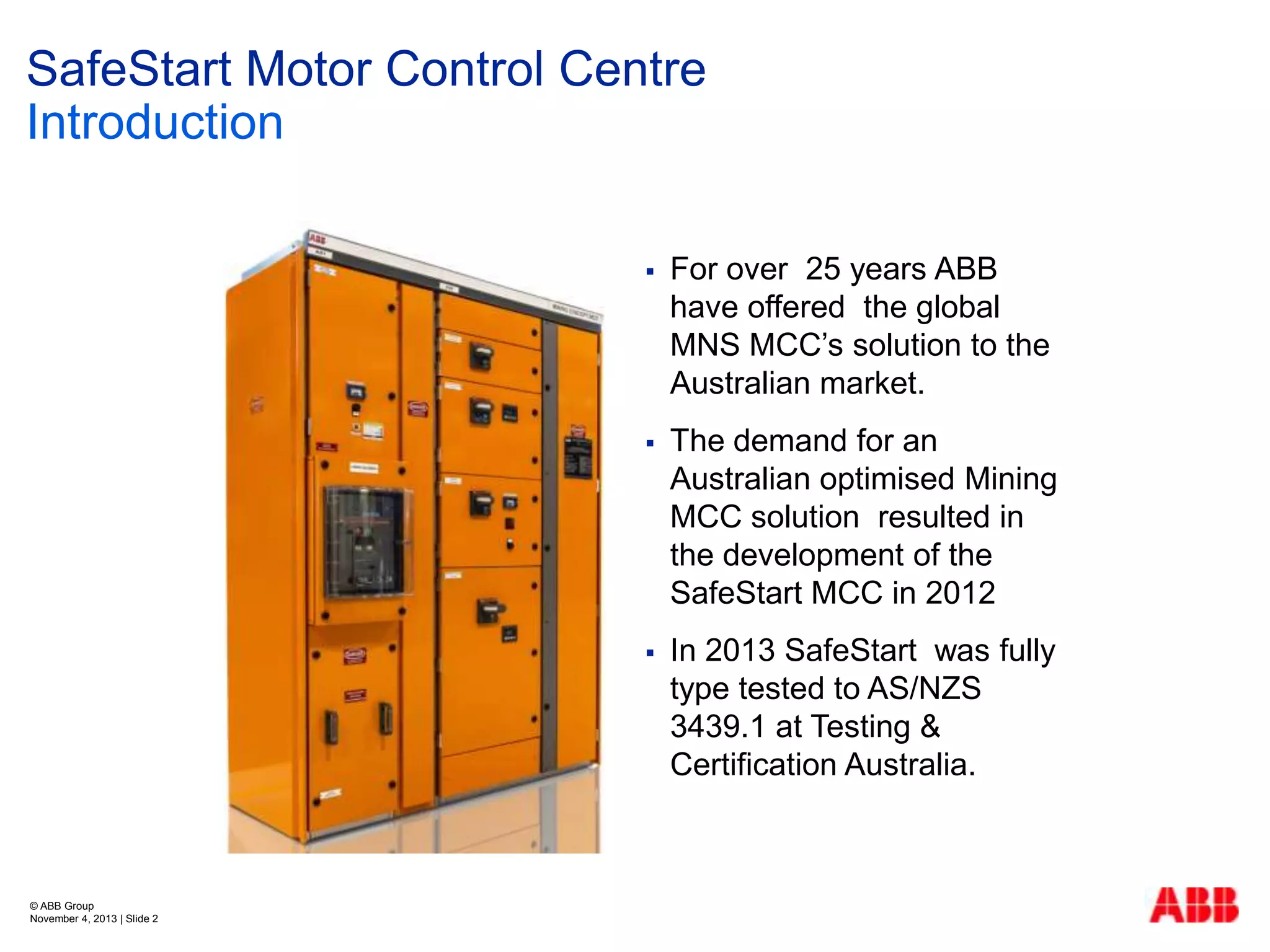 1) SafeStart was developed in 2012 as an Australian optimized MCC solution and fully type tested to Australian standards in 2013.
