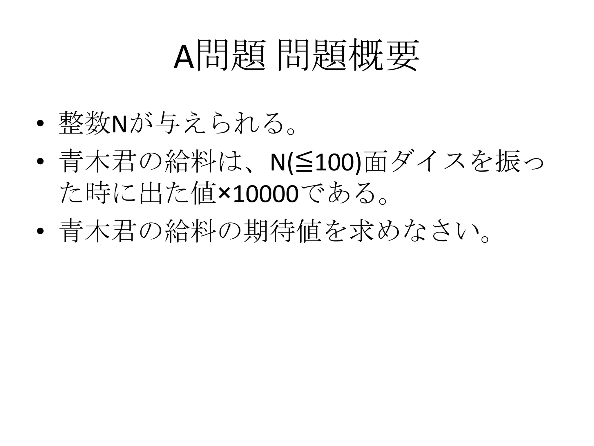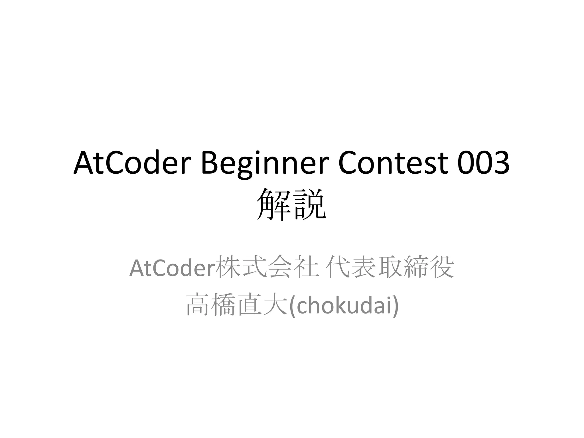 AtCoder Beginner Contest 003 解説 1. 2. 3. A問題 解き方の流れ