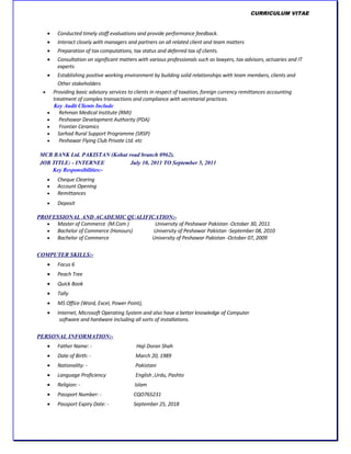 Abdul Malik's curriculum vitae outlines his objective to gain professional experience while contributing to organizational growth. He has extensive experience in accounting and auditing, including roles at Mehran Auto Spare Parts LLC and Saeed Methani Mushtaq & Co., highlighting responsibilities in financial management and audits. He holds a Master's degree in Commerce and is proficient in various accounting software, with a strong ability to adapt and work in team environments.