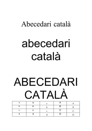 This document is the Catalan alphabet presented with each letter written three times in uppercase, lowercase, and uppercase. It lists all the letters of the Catalan alphabet from A to Z, with the letters written out three times each to demonstrate the different cases.