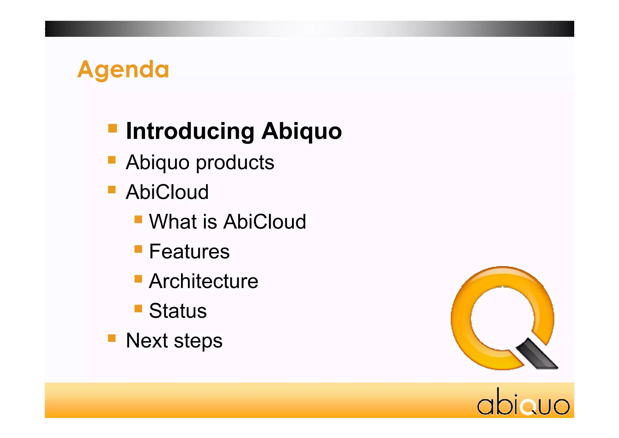 Abiquo is an open source cloud computing software company that develops and manages cloud platforms. Their flagship product AbiCloud is a cloud management platform that allows companies to create and manage both public and private clouds using virtualized heterogeneous environments. It provides infrastructure management, virtual data centers, storage, networking and user management capabilities. Abiquo offers community, enterprise and ISP editions of AbiCloud and also develops complementary products for grid and big data applications.