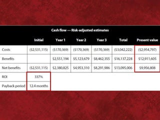 This presentation proposed implementing Microsoft Lync to address communication problems following Anheuser-Busch InBev's merger. It identified issues like rigid structures, multiple platforms, and lost informal relationships. Social network analysis was discussed to map relationships and identify solutions. Microsoft Lync was introduced as a solution to improve communication through features like instant messaging, video calling, and collaboration tools. Potential benefits included increased productivity, innovation, and cost savings. Implementation costs were estimated along with projected financial benefits over three years. Testimonials from other companies highlighted benefits like increased efficiency and faster problem resolution times.