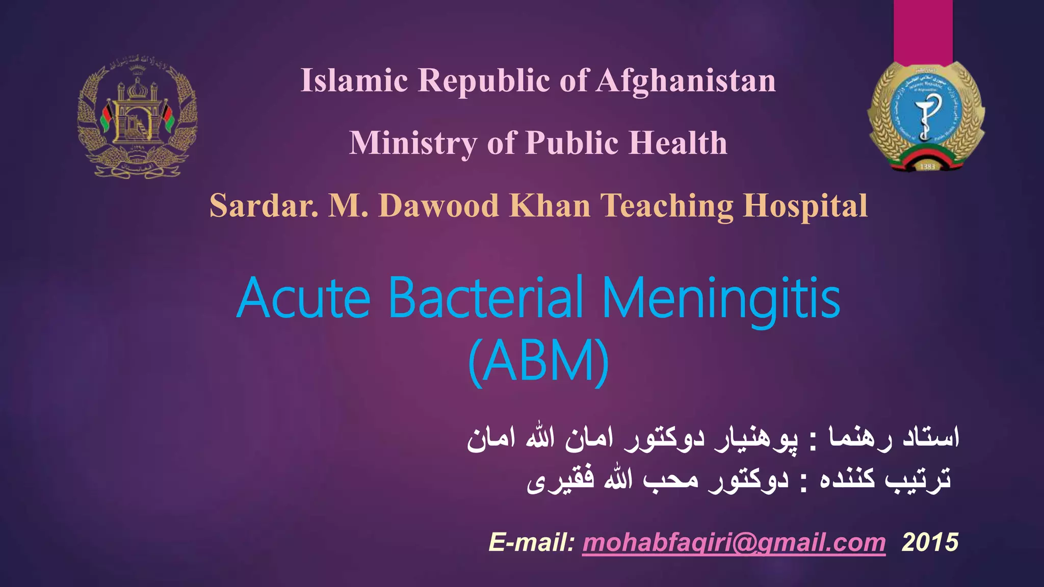 Acute bacterial meningitis (ABM) continues to be associated with high mortality and morbidity, despite advances in antimicrobial therapy. Over the past several decades, the incidence of bacterial meningitis in children has decreased but there remains a significant burden of disease in adults, with a mortality of up to 30%. Although the pathogenesis of bacterial meningitis is not completely understood, knowledge of bacterial invasion and entry into the CNS is improving. Clinical features alone cannot determine whether meningitis is present and analysis of cerebrospinal fluid is essential for diagnosis. Newer technologies, such as multiplex PCR, and novel diagnostic platforms that incorporate proteomics and genetic sequencing, might help provide a quicker and more accurate diagnosis. Even with appropriate antimicrobial therapy, mortality is high and so attention has focused on adjunctive therapies; adjunctive corticosteroids are beneficial in certain circumstances. Any further improvements in outcome are likely to come from either modulation of the host response or novel approaches to therapy, rather than new antibiotics. Ultimately, the best hope to reduce the disease burden is with broadly protective vaccines.