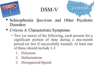 Abnormal psychology involves the study of psychological disorders, which are behaviors judged to be inappropriate, distressing, or dysfunctional. Psychological disorders are studied and treated by psychologists and psychiatrists using various theoretical perspectives including psychodynamic, behavioral, cognitive, and biological approaches. The Diagnostic and Statistical Manual of Mental Disorders (DSM) provides standardized criteria for classifying and diagnosing mental disorders. Major classes of disorders include anxiety disorders, mood disorders like depression, dissociative disorders, personality disorders, and psychotic disorders like schizophrenia.
