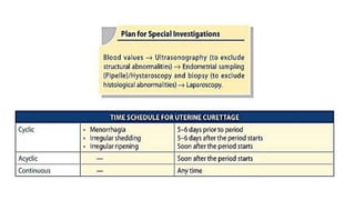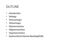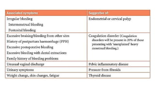 • Menorrhagia is defined as cyclical regular uterine blood loss greater