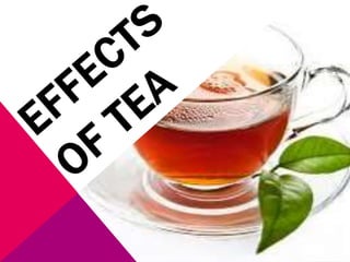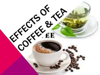 Coffee and tea are popular beverages made from plants. Coffee is made from coffee beans and brewed with hot water, while tea is made from tea leaves. Both contain caffeine and have various health benefits, such as potential increased metabolism and fat burning from coffee, and potential reduced risk of heart disease and cancer from antioxidants in tea. However, caffeine can also cause side effects like increased heart rate, anxiety, and insomnia in some people depending on their individual sensitivity.