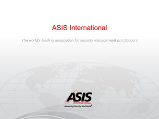 ASIS International, founded in 1955, is the world's leading association for security management practitioners with over 38,000 members and 234 chapters. It offers unrivaled networking opportunities, professional development, and industry certification programs to enhance the skills and recognition of security professionals. The organization focuses on promoting excellence in security management through standards, guidelines, and advocacy efforts.