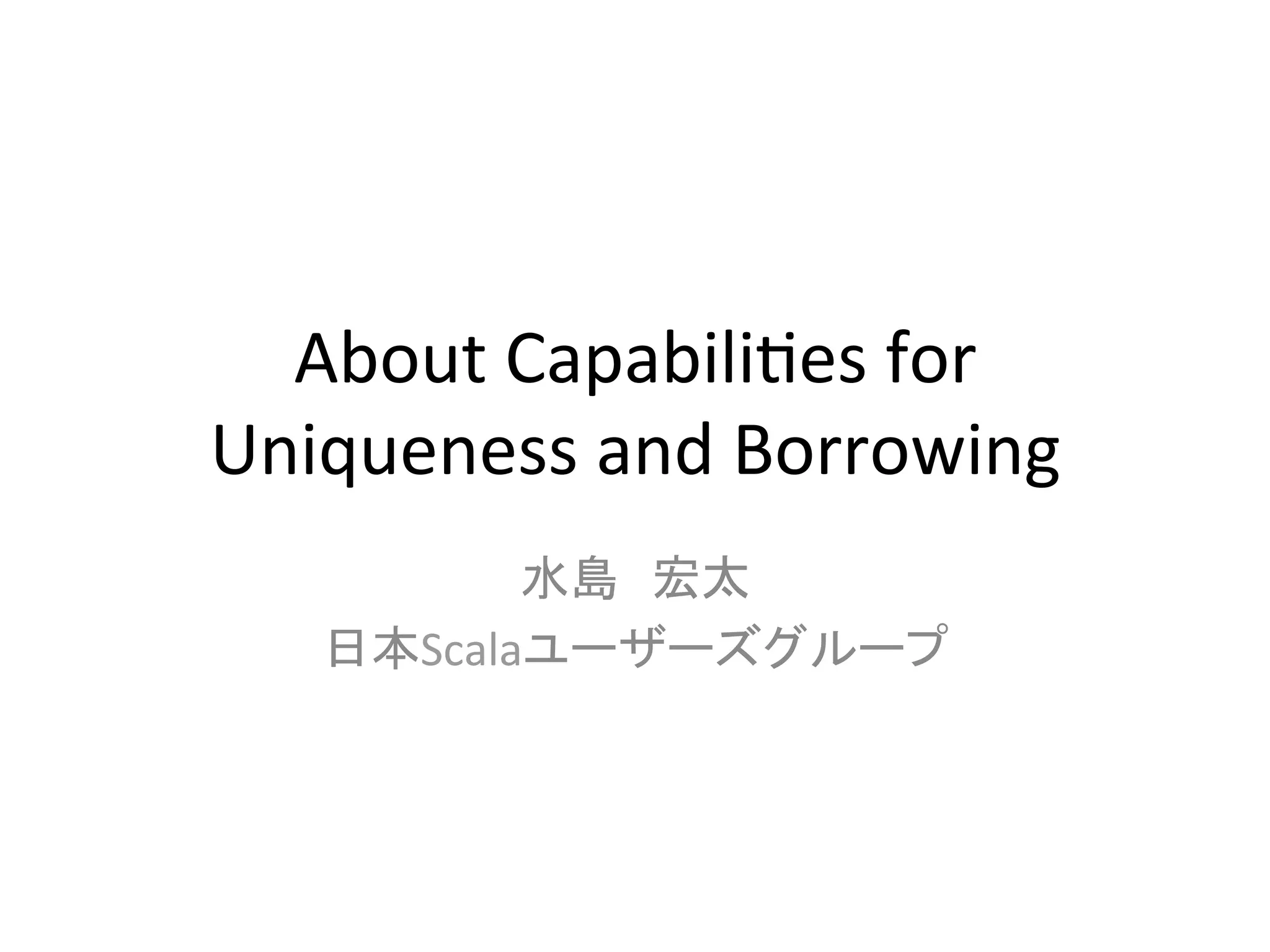 Capabilities for Uniqueness and Borrowing, Philipp Haller, Martin Odersky についてざっくりとした解説をしたスライドです。型付け規則とかの話は全部カットしました。