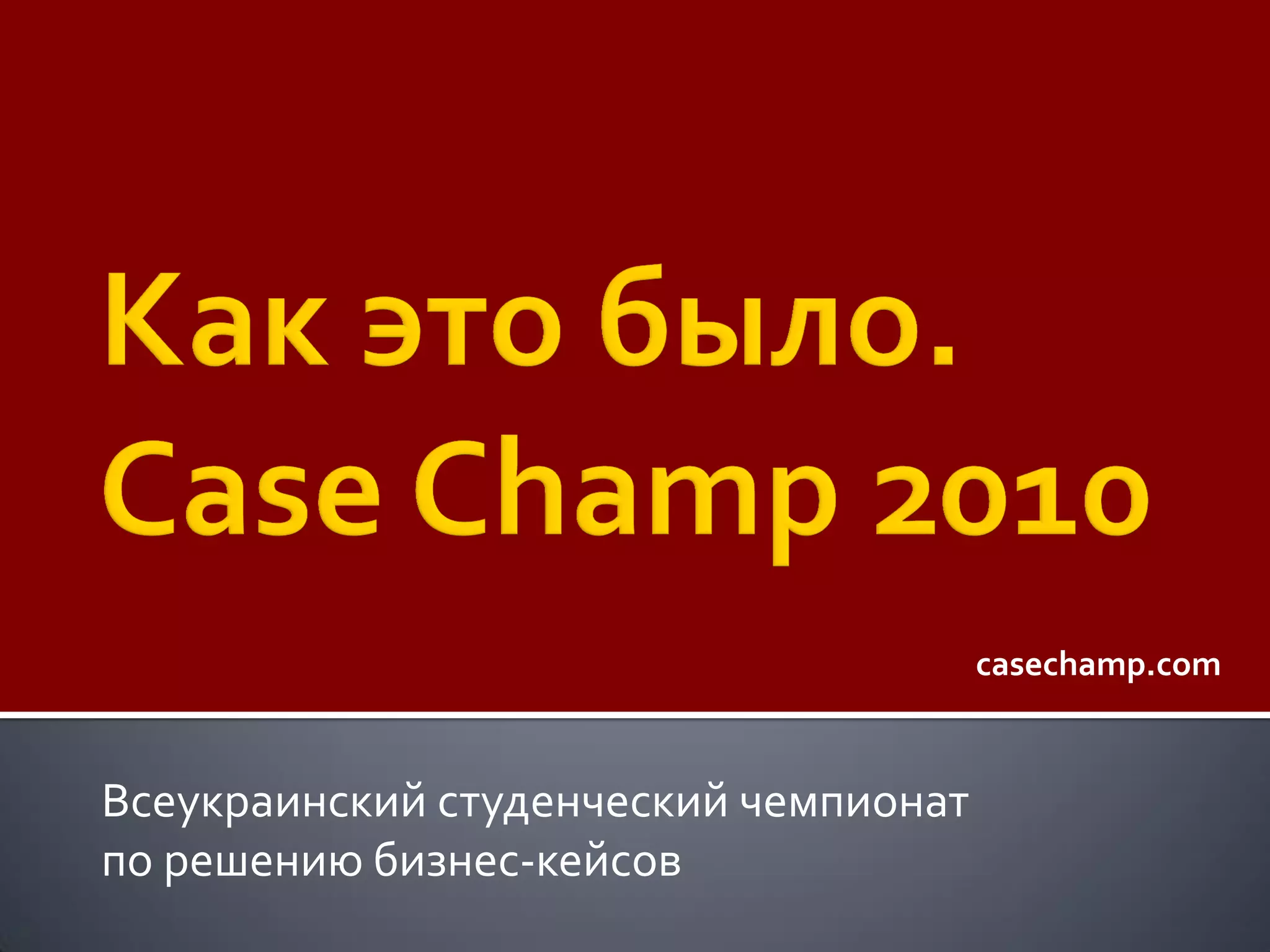 Casechamp.com организует всеукраинский студенческий чемпионат по решению бизнес-кейсов, в котором участвуют студенты и недавние выпускники. Чемпионат проходит в три этапа: он-лайн тур, полуфинал и финал, предоставляя командам возможность развить навыки решения реальных бизнес-проблем. Участники имеют возможность получить полезные знакомства и опыт, а также шанс на приглашение на собеседования.
