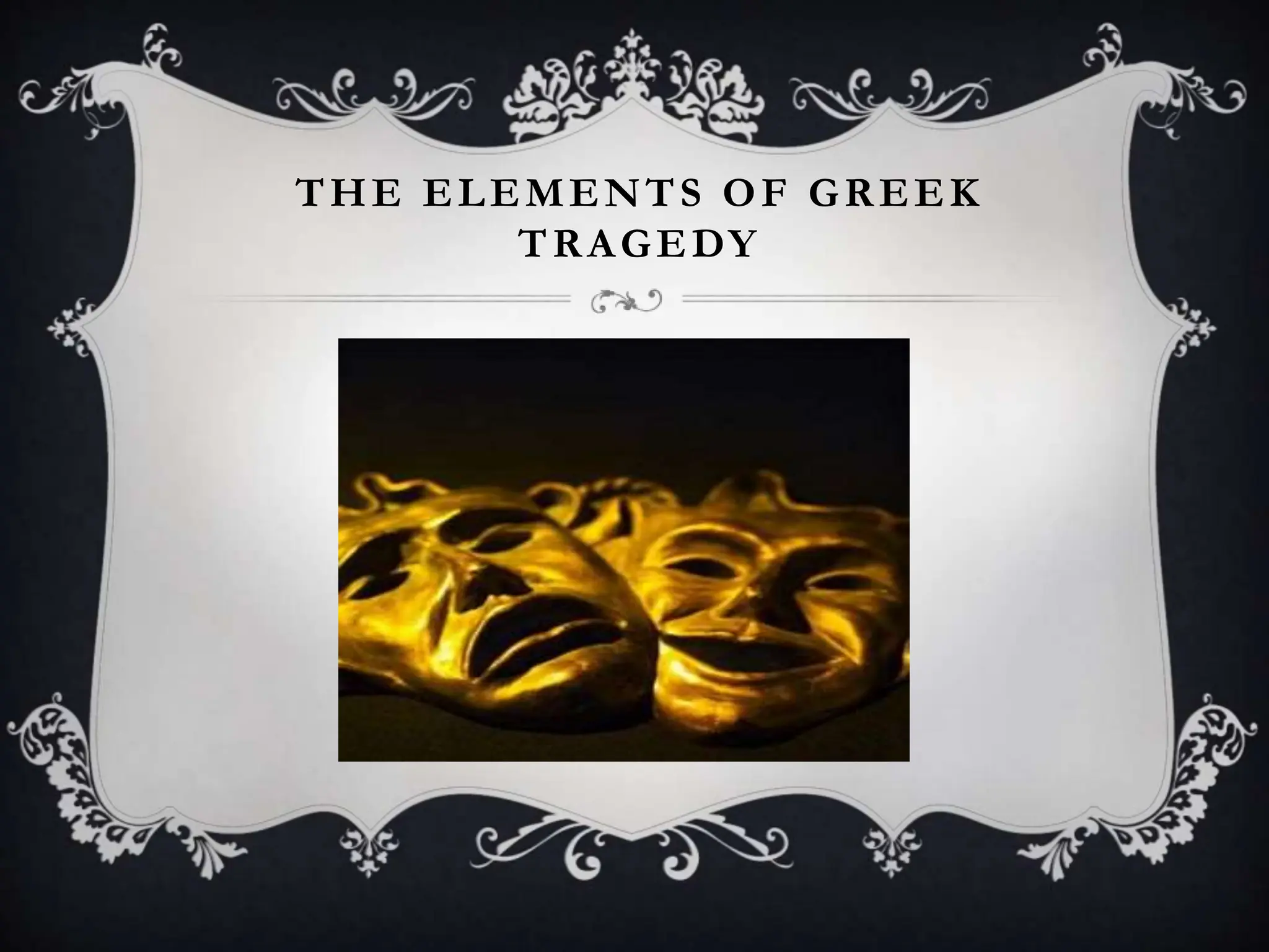 This document outlines the key elements of Greek tragedy according to Aristotle. It defines tragedy as the downfall of a basically good protagonist through some error or misjudgment. The three principles are that tragedy should evoke pity and fear in the audience, the tragic hero must be good, and the hero's demise comes from personal error. Other elements are plot, characters (the tragic hero), thought (theme), diction (literary devices), song (chorus), and spectacle (least important). The plot must have beginning, middle, end, and cause-effect chain leading to climax and resolution. The tragic hero's flaw and hubris often lead to nemesis or downfall.