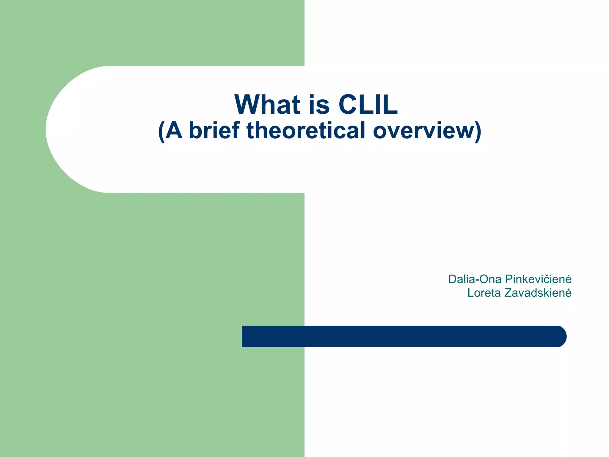 CLIL (Content and Language Integrated Learning) is an umbrella term that covers various educational approaches where lessons have two main aims - one related to a particular subject or topic, and one linked to language learning. It is a dual-focused approach where neither the content nor the language is dominant. CLIL aims to accelerate learning through an integrated, holistic and symbiotic view of language and content. Potential benefits include improved language skills, increased motivation for learning languages and content, and professional satisfaction for teachers. However, CLIL also presents challenges such as the complexity of balancing language and content, determining who teaches CLIL lessons, potential threats to the native language, and a lack of clear methodology and assessment.