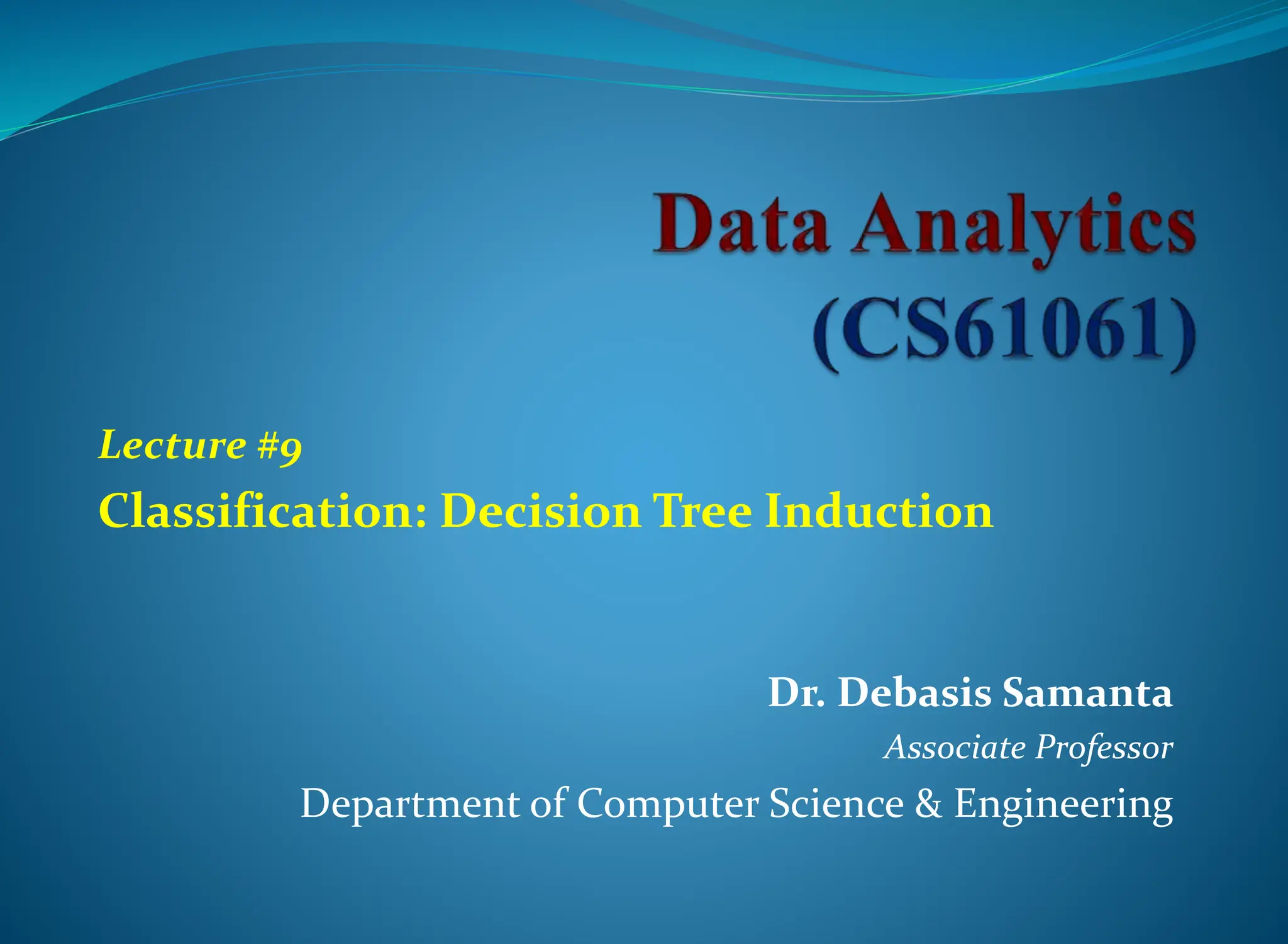 This document discusses decision tree induction and the concept of entropy. It begins with an overview of decision trees, how they are used for classification tasks, and the basic algorithm for building a decision tree from a training dataset. It then covers node splitting for different attribute types in more detail. Examples are provided to illustrate decision tree building. The document also discusses the concept of entropy from information theory and how it is used as a measure of uncertainty in a training dataset to select the best attributes during decision tree construction.