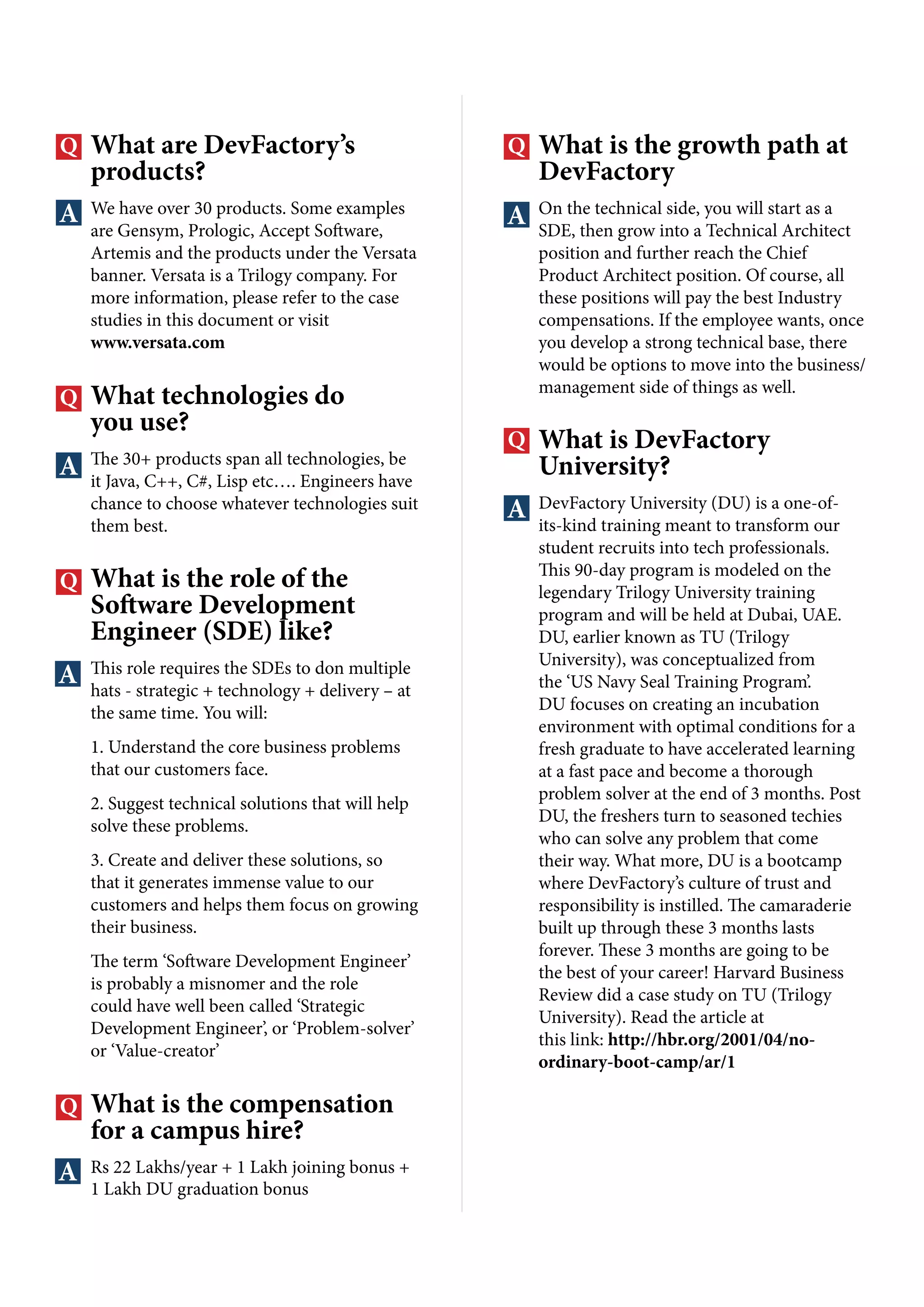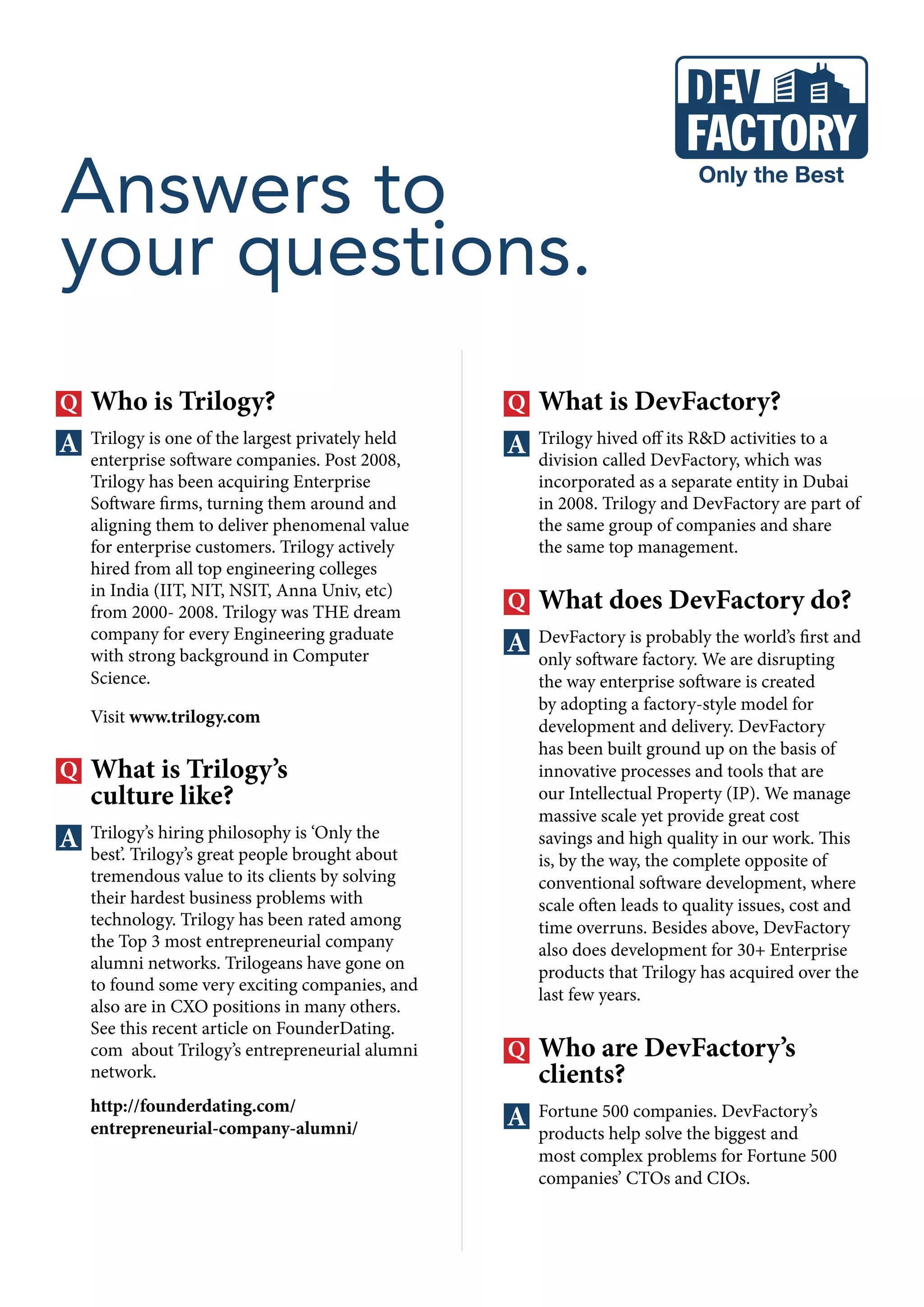 Trilogy University (TU) is Trilogy's corporate training program for new hires modeled after the US Marine Corps boot camp. It pushes recruits to their limits through intense challenges and teamwork to solve real business problems under tight deadlines. Graduates emerge highly confident and bonded to each other and the company.