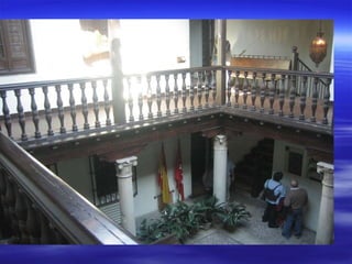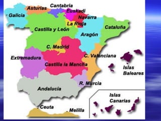 The document summarizes the distribution of responsibilities in the Spanish education system. At the central government level, general organization and minimum standards are established. Autonomous communities manage their own education authorities and curriculum. Local administrations are responsible for schools and compulsory education. Schools have autonomy in organization, education, and finances. The second half of the document describes the organization of the DAT Madrid-Sur education authority and its departments including teacher training, technology, and language programs. It provides an overview of the structure of the Spanish educational system from infant school through university.