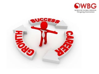 World Biz Global Services (WBGS) is a leading BPO services provider founded in 2010 that employs skilled people around the world. WBGS aims to provide cost-effective, innovative solutions for clients through a global workforce and constant focus on quality, customer experience, and compliance. The company has grown significantly and now serves clients across various industries including financial services, insurance, healthcare, and more.