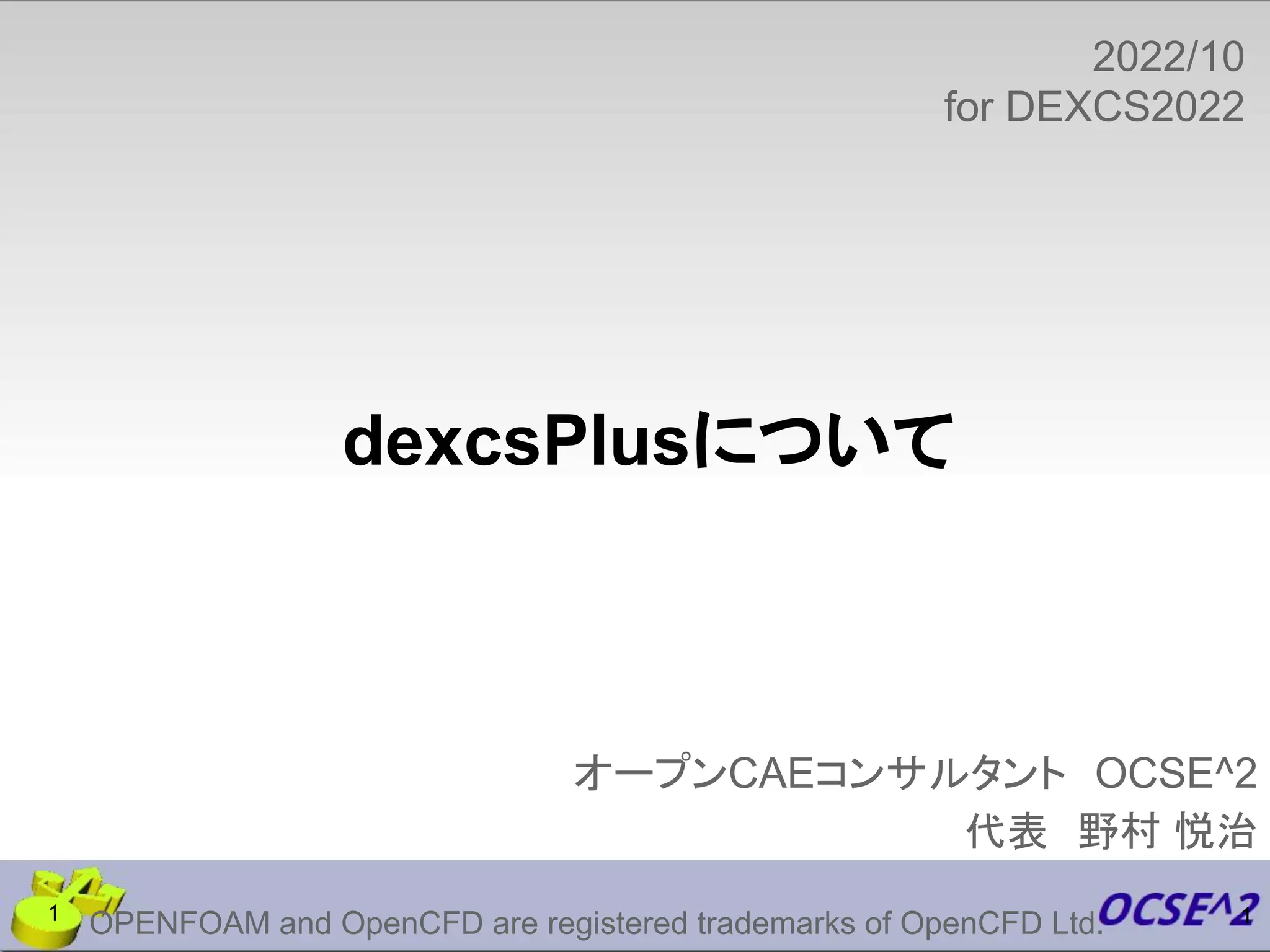 悦治 OPENFOAM and OpenCFD are registered trademarks of OpenCFD Ltd. 1 1 2022/10 for DEXCS2022