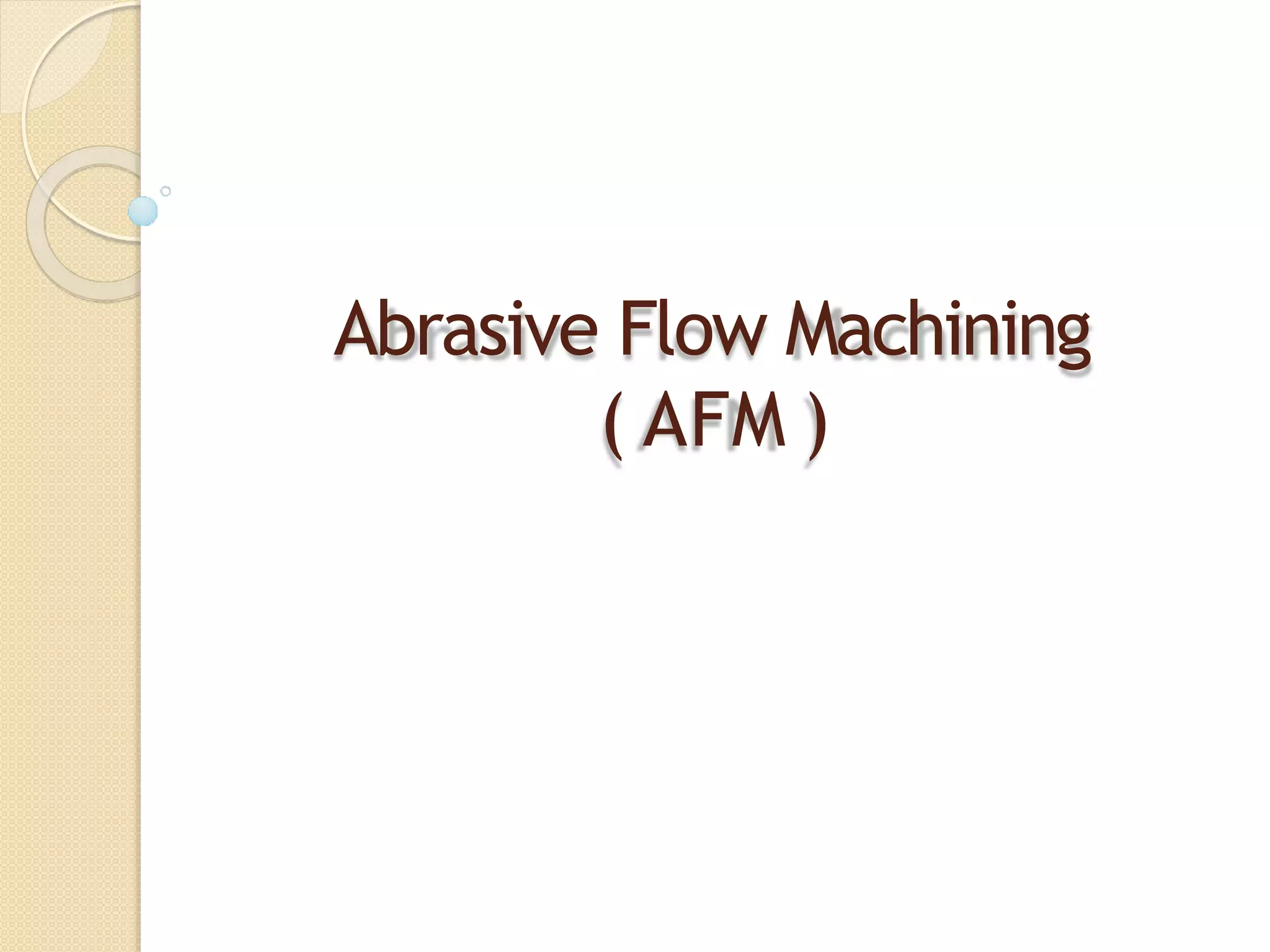 Abrasive flow machining (AFM) is a method developed in the 1960s to polish, deburr, and finish intricate internal surfaces and passages. There are three main types of AFM: one-way, two-way, and orbital. AFM uses an abrasive media that is extruded through the workpiece to remove material and produce a very smooth surface down to Ra of 50nm. Key advantages include simultaneously deburring, radiusing, and polishing, and producing uniform results. AFM is widely used in aerospace, automotive, medical, and mold industries to improve surfaces, reduce friction, eliminate imperfections, and extend component life. Research aims to further improve monitoring and control of