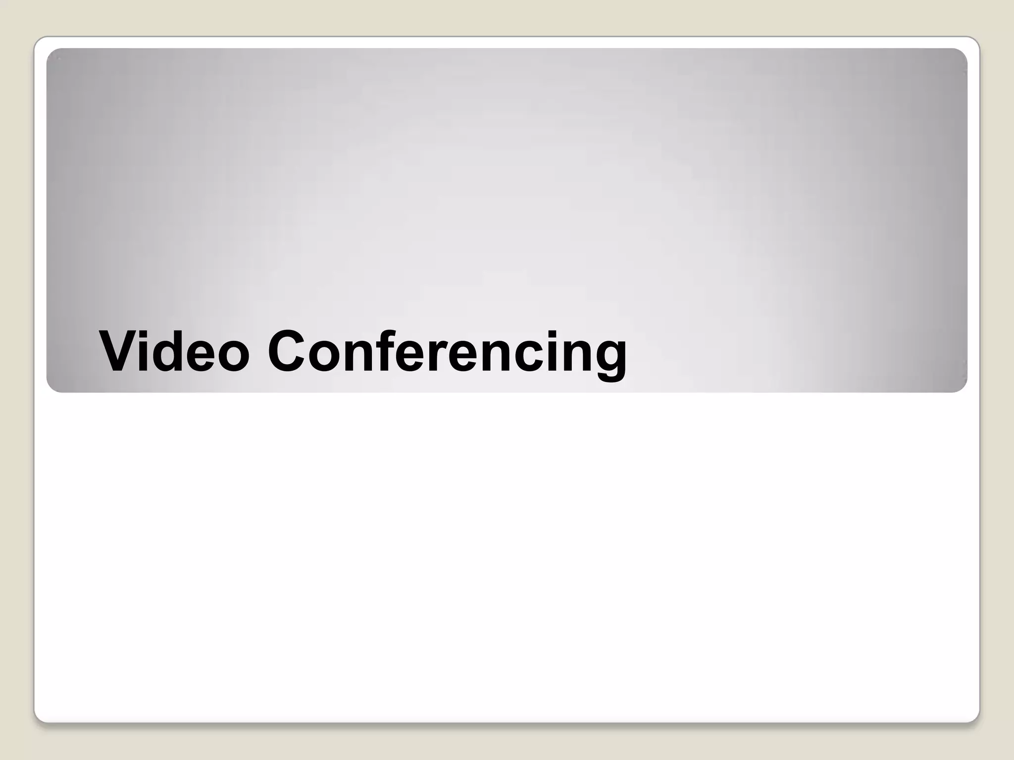 Video conferencing allows two or more people at different locations to meet face-to-face in real time using telecommunication technologies that provide simultaneous two-way video and audio. It enables visual collaboration between sites and can connect classrooms to guest speakers and experts, making learning opportunities more accessible. Videoconferencing systems can be used for everything from private conversations between two offices to meetings involving multiple large rooms across several locations and allow sharing of documents.