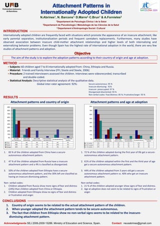1. The study explored attachment patterns in 60 internationally adopted children aged 7-8 from China, Ethiopia, and Russia based on the Friends and Family Interview.