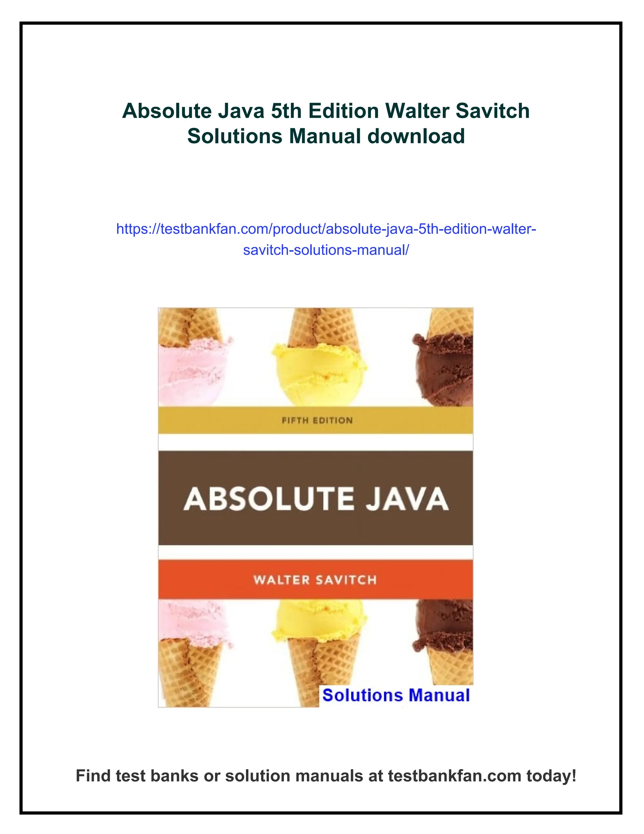 Absolute Java 5th Edition Walter Savitch Solutions Manual