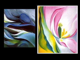 By the late 19th century, European artists felt the need for a new form of art that reflected the fundamental changes in technology, science, and philosophy. Total abstraction bears no trace of anything recognizable and is considered non-representational by the artist, who views the work as merely design and composition without meaning. The document then provides examples of artists from Van Gogh to local contemporary artists who have contributed to the development of abstract art in various movements from Post-Impressionism to Color Field art.