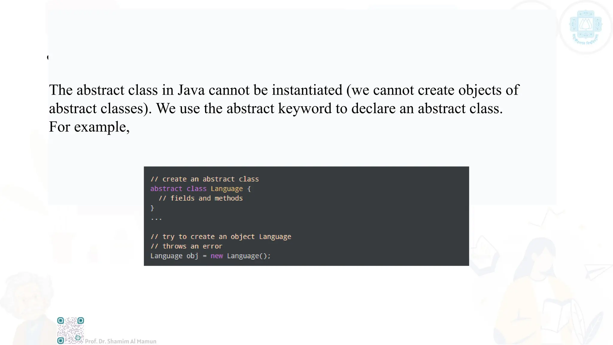 •We cannot create objects of an abstract class.
