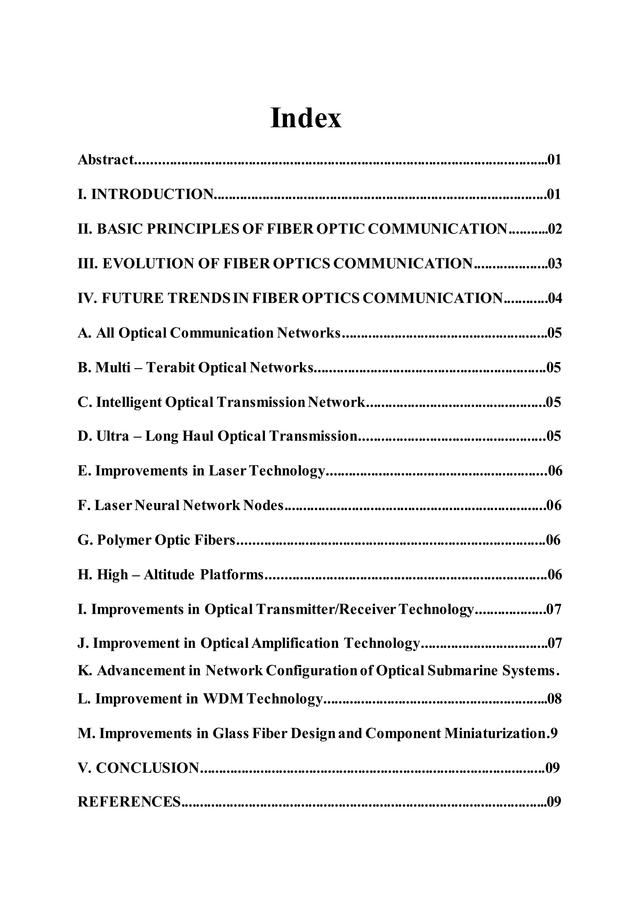 This document discusses the past, present, and future of fiber optic communication technology. It provides an overview of the basic principles and evolution of fiber optic systems over multiple generations. Future trends discussed include all optical networks, multi-terabit transmission using dense wavelength division multiplexing, intelligent optical networks, ultra-long haul transmission, improvements in laser and amplification technologies, advancement of submarine network configurations, and continued miniaturization of components. Fiber optic communication capacity and capabilities are expected to continue growing to meet rising bandwidth demands.