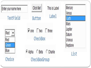 TextField, Label,TextArea, RadioButton, CheckBox, Choice,