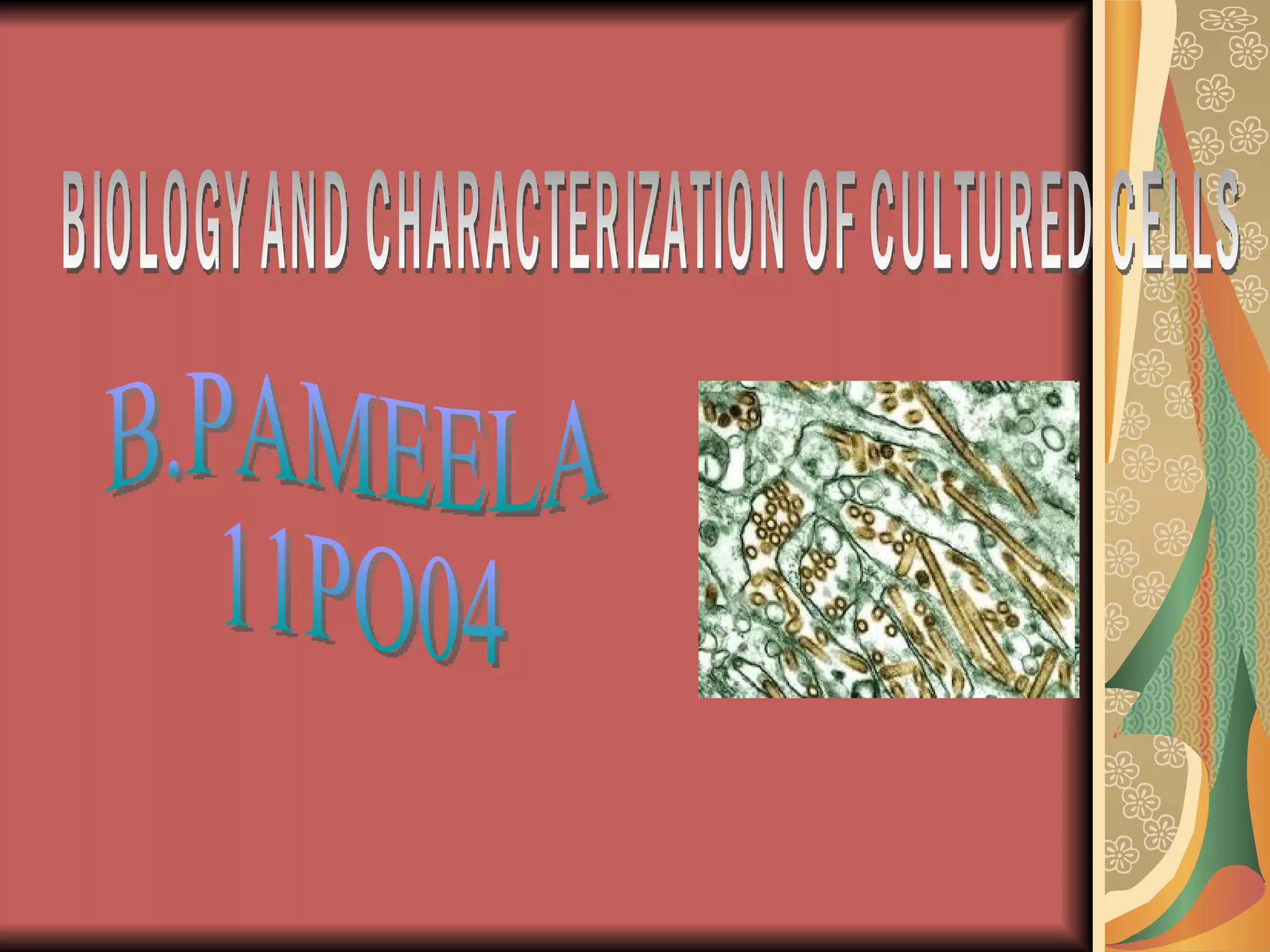 Characterization of cell lines is important to identify their origin and genetic stability. Techniques used include karyotyping, DNA content analysis, and DNA hybridization. Cultured cells have low cell-cell interaction, cannot perform differentiated functions, and are influenced differently by hormones and nutrients than in vivo cells. They also lack the 3D architecture of in vivo cells and favor proliferation of unspecialized cells. Growth parameters like population doubling time, confluence, cell cycle time, cell density, contact inhibition, and saturation density are measured. Tissue typing identifies species of origin using chromosomal or isoenzyme analysis. Tissue and cell line identity can be determined by markers like differentiated products, enzymes, and filament proteins. Transformed