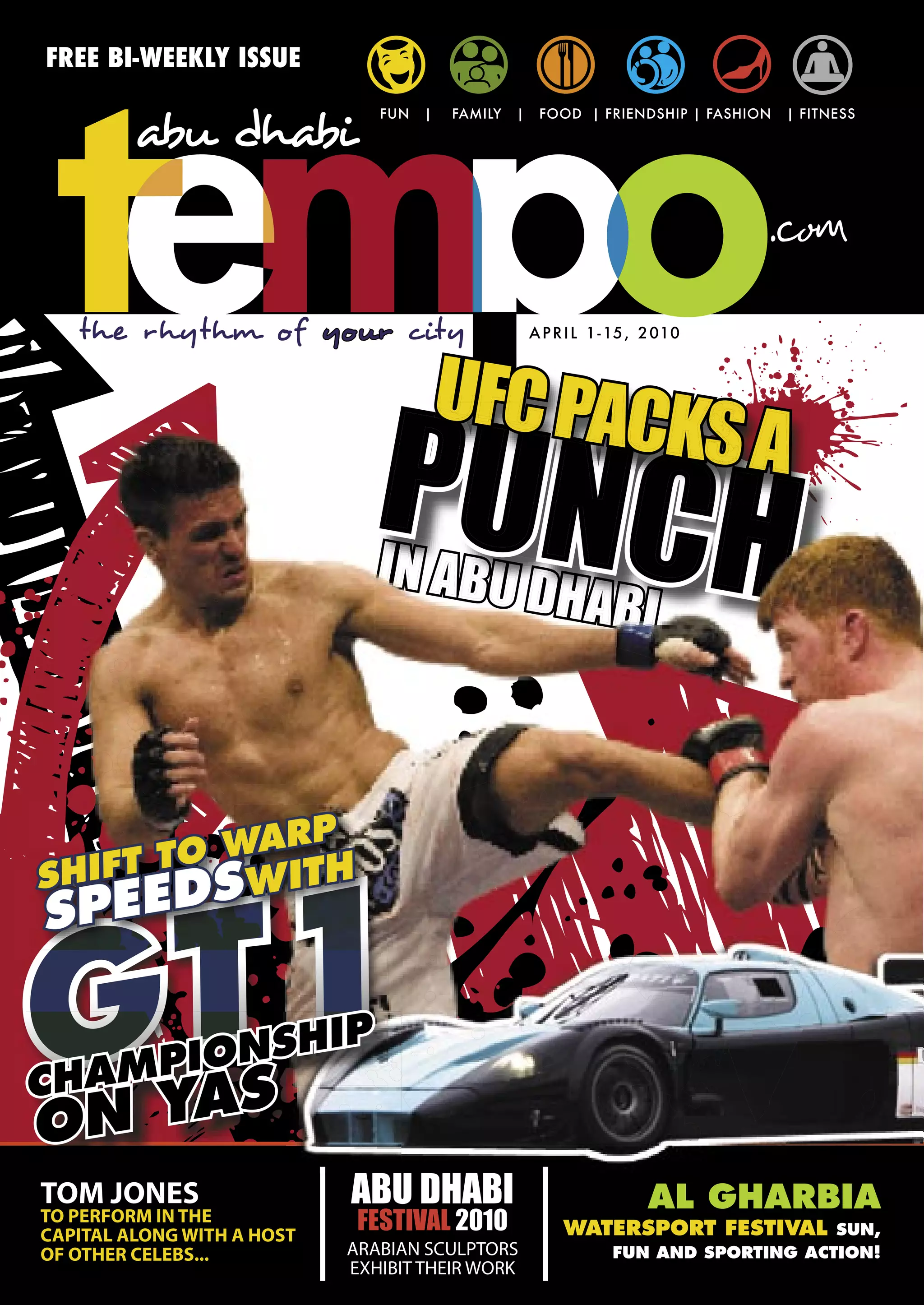 The document is a bi-weekly magazine from Abu Dhabi that covers topics related to community events, arts, culture, entertainment and lifestyle. It includes articles on a music festival in Abu Dhabi featuring Tom Jones, a water sports festival, an art exhibition by Arabian sculptors, education news and an archaeological youth initiative in Al Ain. The magazine encourages readers to provide feedback and story suggestions to the editors.