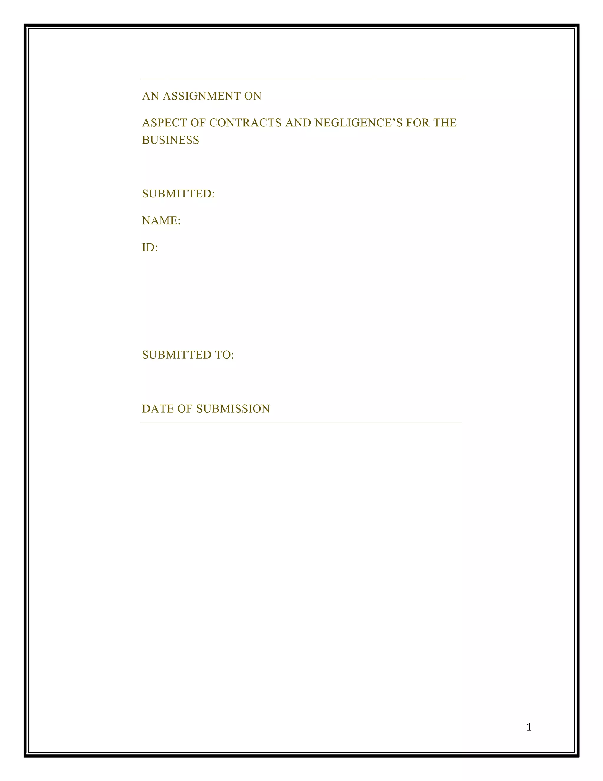 This document contains an executive summary and table of contents for an assignment on aspects of contracts and negligence for a business course. The executive summary discusses how a college hired legal advisors and a marketing agency. It also discusses how a non-teaching staff was injured after ignoring instructions to follow the dress code. The college is bound by vicarious liability laws to pay compensation. The table of contents outlines the document's four tasks, which apply elements of contracts and negligence to different scenarios and analyze terms, defenses, and vicarious liability.