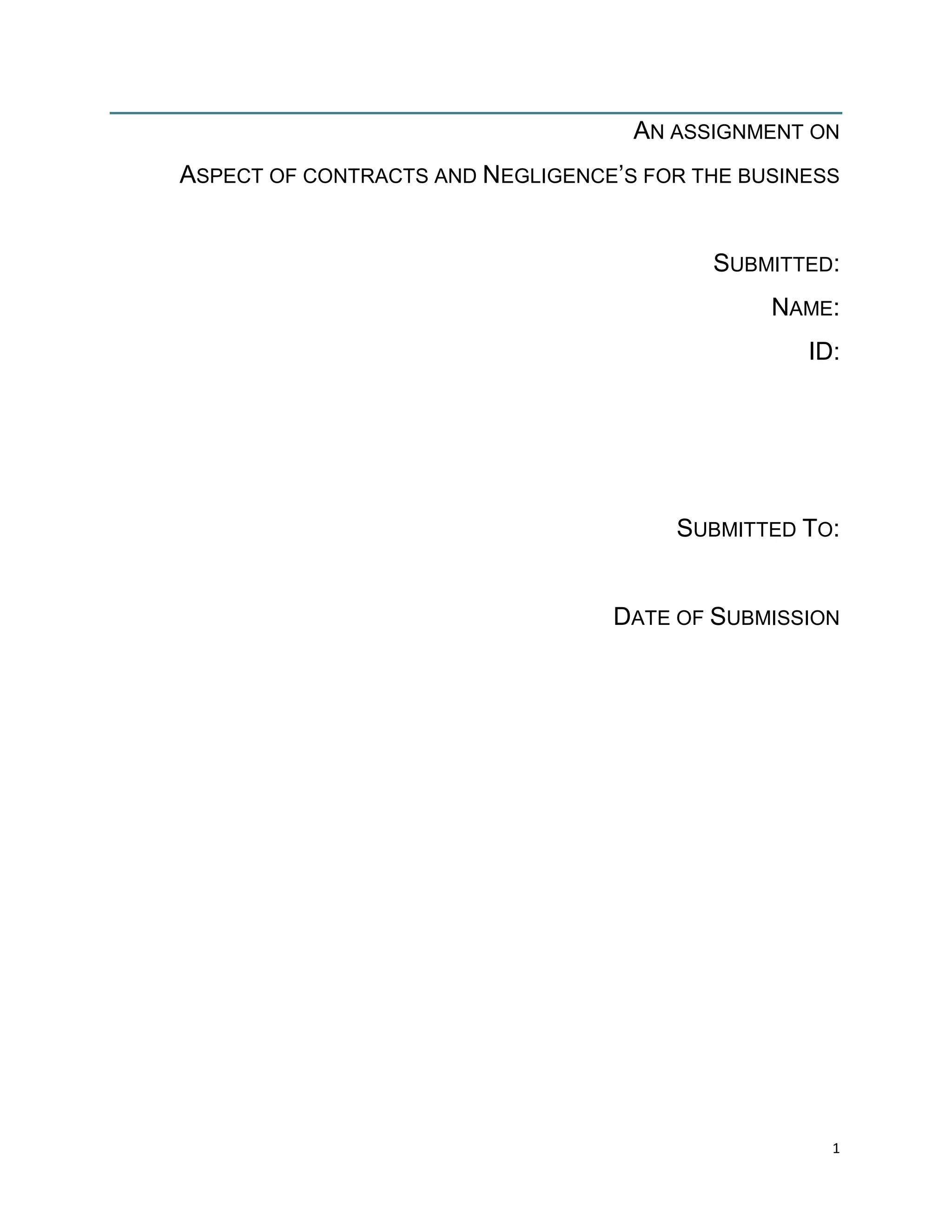 This document discusses contracts and negligence for a business college. The college entered into a contract with a marketing agency to help improve its reputation but faced legal issues. It was sued due to negligence after a staff member was injured for not wearing proper attire. The college is liable through vicarious liability principles.