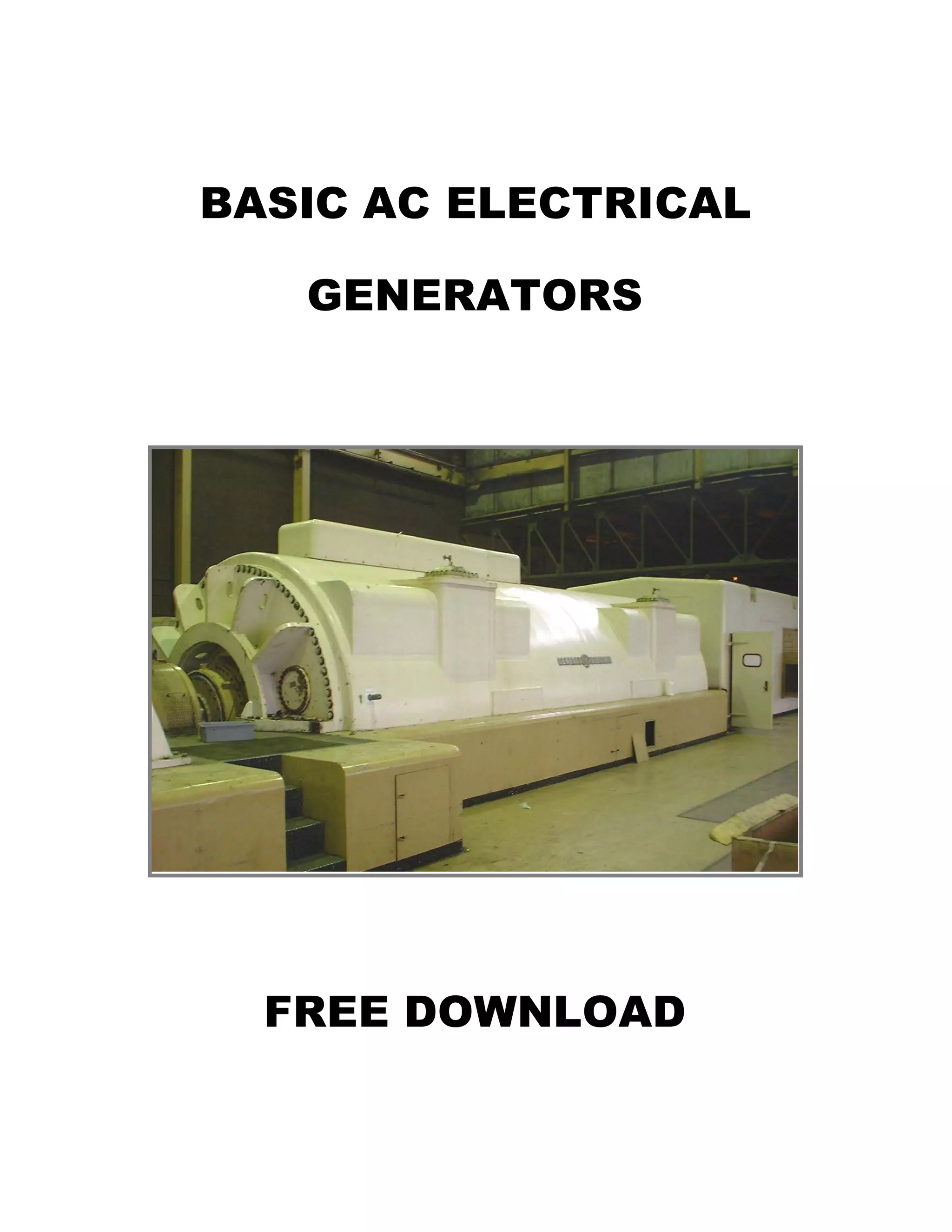This document provides an overview of basic AC electrical generators. It discusses different types of generators including rotating armature generators and rotating field generators. It also covers polyphase generators and the different cooling methods used in large power generation generators, including air cooling, hydrogen cooling, and water cooling. The document reviews generator components such as the stator, rotor, windings, and exciter as well as design considerations for temperature rise, reliability, and construction.