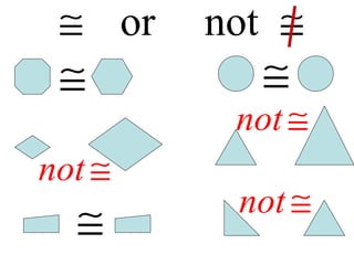 The document discusses various geometric symbols and concepts. Key symbols represent points, lines, segments, rays, and distance. Measurements are arbitrary due to choice of units and accuracy. Coordinates assign numbers to points on a number line to indicate position. The ruler postulate allows computing distance as the absolute value of coordinate differences. The segment addition postulate states the distance along a line equals the sum of its parts. Solving algebraic problems using these concepts is emphasized.