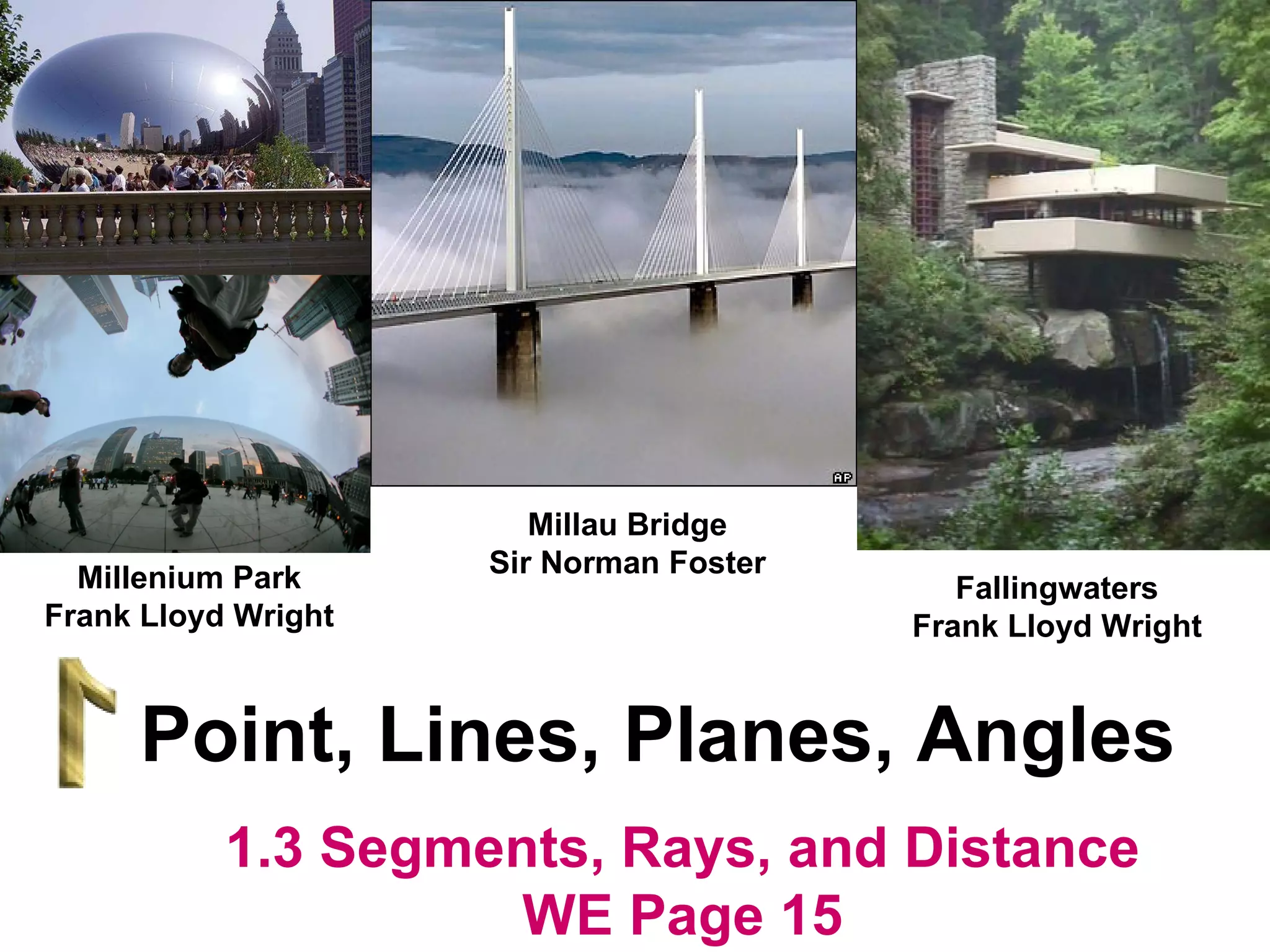 The document contains examples and exercises on classifying statements as true or false based on diagrams of line segments, rays, and their intersections. It also contains examples of finding distances between points on a number line, coordinates of midpoints, values of variables that satisfy given conditions about line segments.
