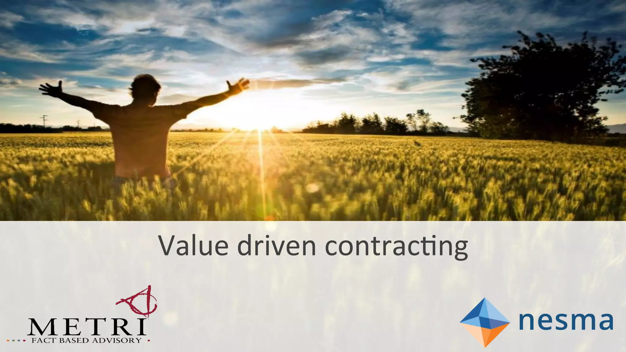This document discusses value-driven contracting in IT services. It proposes measuring the value of work delivered in three categories: technical, functional, and emotional. Value is defined as work that adds benefits to the business like new functionality, reduced risk, or lower costs. Automated tools are recommended to objectively measure software quality, size, and productivity without burdening delivery teams. This would allow comparing suppliers' performance in a transparent, repeatable way.