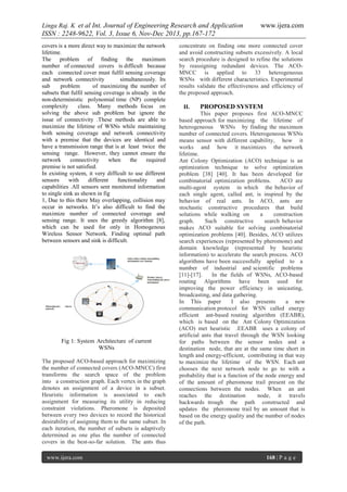 The document presents a study on maximizing the lifetime of heterogeneous wireless sensor networks (WSNs) using an Ant Colony Optimization (ACO) approach. It discusses the challenges faced by WSNs due to power constraints and proposes a novel method to enhance network connectivity and coverage through optimized routing strategies employing ACO. The proposed system demonstrates improved efficacy in extending network lifetime by efficiently managing sensor nodes and communication protocols.