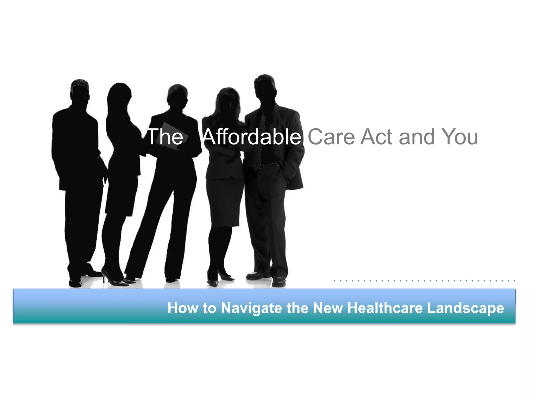 This document provides information about navigating healthcare options under the Affordable Care Act (ACA). It explains that individuals can receive subsidies to help pay for health insurance purchased on exchanges if their income is between 133-400% of the federal poverty level. It also outlines the penalties for not having health insurance ("individual mandate") and details the metal tiers of ACA-compliant health plans (platinum, gold, silver, bronze). Open enrollment begins on October 1, 2013.