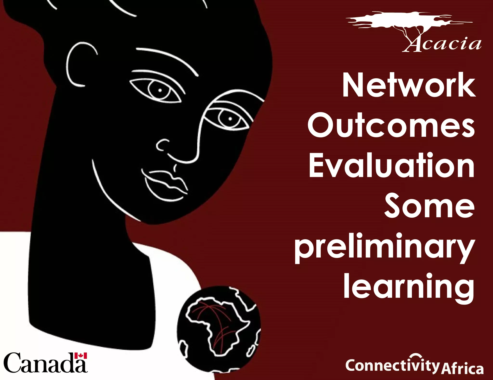 This document discusses the evaluation of network outcomes from developing networks in Africa. It aims to reduce isolation among researchers and countries, build capacity for research, and contribute to objectives like setting research agendas. The evaluation examines both internal outcomes like knowledge production and external outcomes like knowledge use, and tensions between outcomes and outputs.